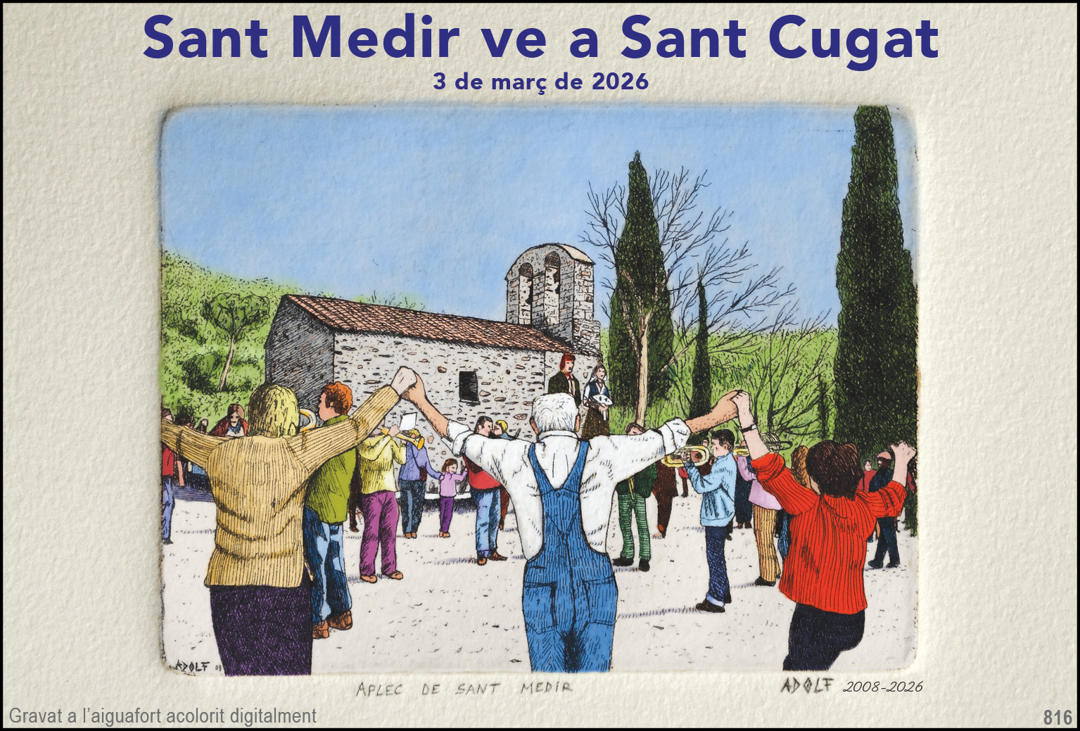 il·lustració santcugatenca" número 816 Antic gravat a l'aiguafort, acolorit digitalment: tradició i modernitat. |